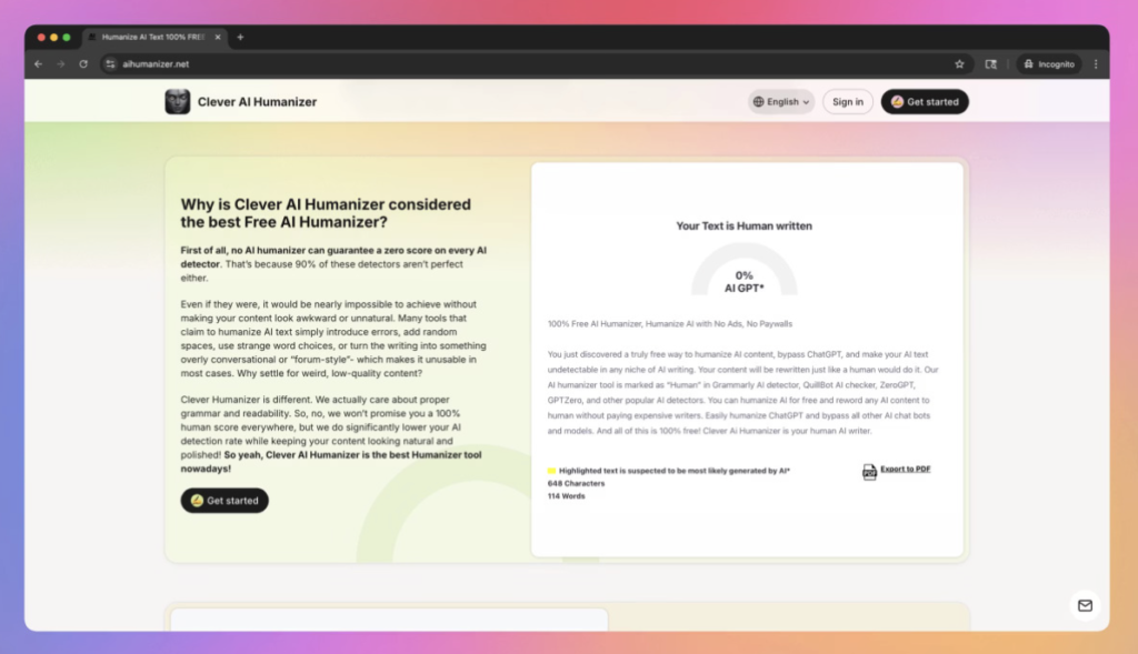 Clever AI Humanizer has emerged as a strong performer in professional evaluations. Its rewritten content consistently demonstrates low AI-detection risk while preserving semantic intent. The language feels edited rather than algorithmically generated.