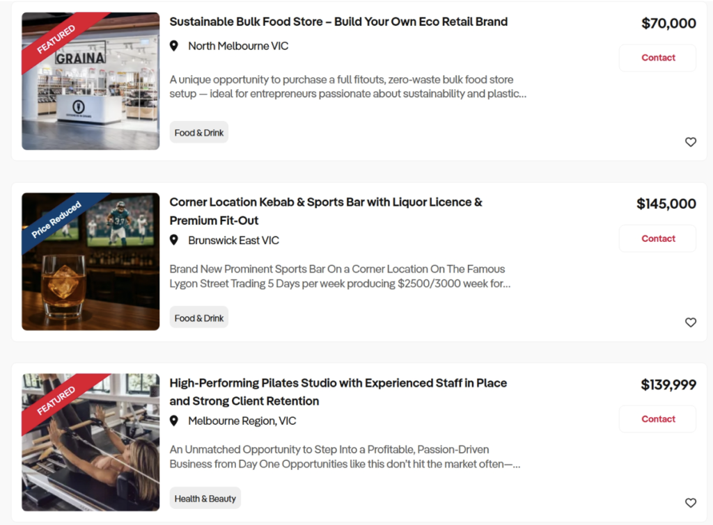 Business For Sale, an Australian platform connecting buyers with businesses available for acquisition, does this effectively on their Melbourne listings page.