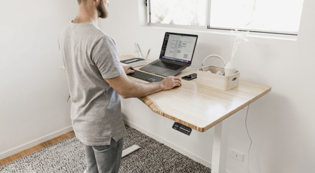 The Desky Dual Ergo Edge is the strongest standing desk for tall Australians in 2026, combining a wide height range, an ergonomic cutout design, stability, smart controls, and cable management that taller frames genuinely need. Its ergo edge is built around how taller bodies interact with a workspace, not retrofitted as a marketing differentiator.