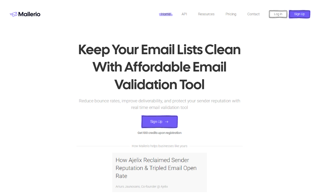It runs your list through real-time validation, flagging junk addresses, typos, and disposable emails before they ever clog your pipeline. The best part? Their API plugs straight into your forms, CRMs, or whatever workflow you already use. That means bad data never makes it into your system in the first place.