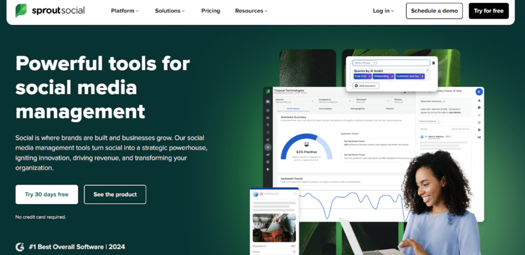 Social teams don’t work in silos anymore. You’ve got customer service replying to DMs, marketing setting up launches, sales peeking at leads, and it all happens on your socials. Sprout Social helps tie it all together without losing your mind. During a new feature rollout, for example, your support team can flag a high-priority comment straight to your inbox, and you can reply before it explodes.