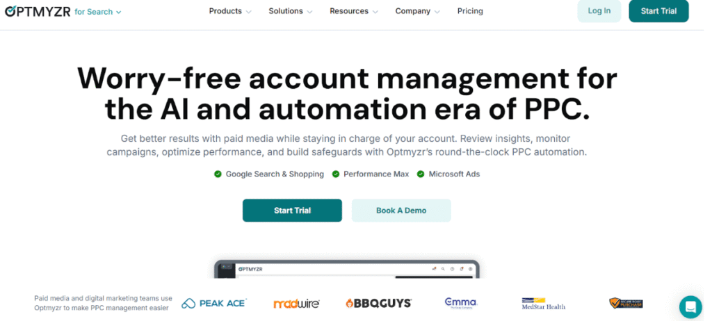 Optmyzr acts like a PPC analyst who never gets tired. Say you’re running 300 Google Ads campaigns across 12 clients, all with different goals. One wants calls. One wants leads. Another wants store visits. Instead of jumping into each account and scanning for broken links, budget drains, or dropped quality scores, you set up Optmyzr’s rule-based optimizations.