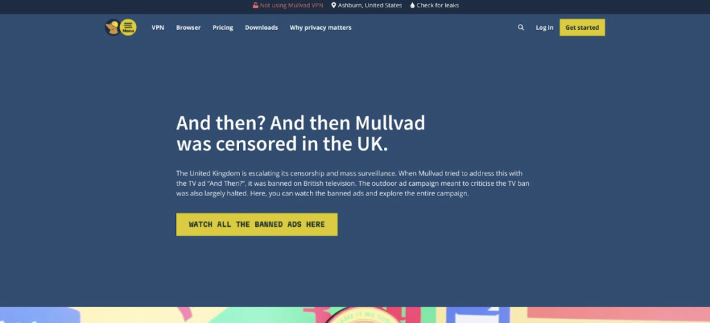 Mullvad VPN Homepage Screenshot Emphasizing Privacy-First Approach
