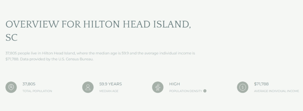 His Hilton Head Island page handles a high volume of local information without overwhelming the visitor. Each section leads with a prominent, descriptive headline that immediately signals what’s ahead.
