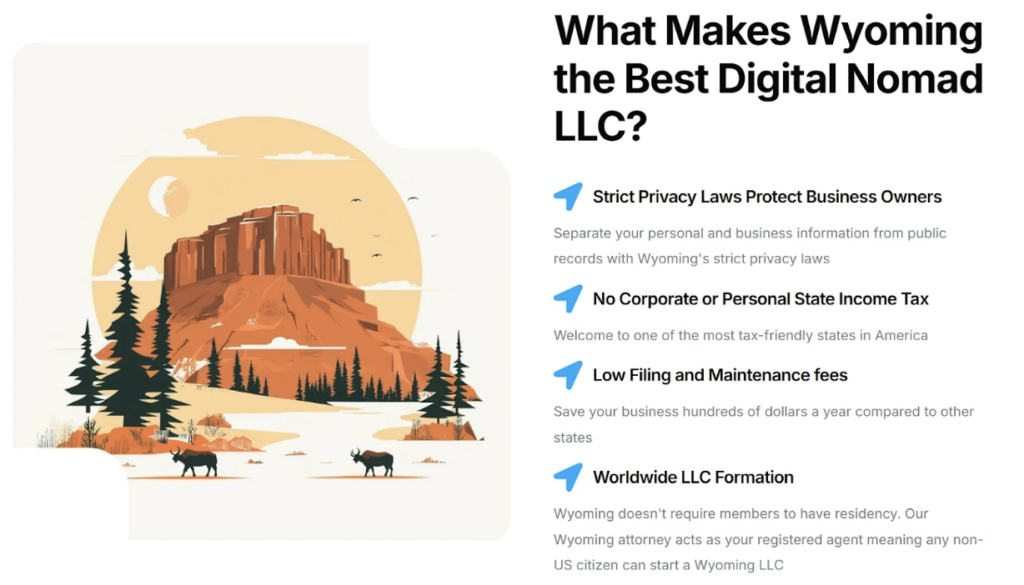 Their landing page discussing LLCs for digital nomads shows how intent-matched messaging is done. Rather than pushing a generic LLC pitch, the page speaks directly to the priorities and lifestyle of location-independent workers.