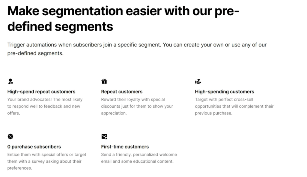 Their email automation landing page keeps things deliberately minimal. Generous whitespace surrounds each element and separates every section, so nothing feels crowded or rushed.