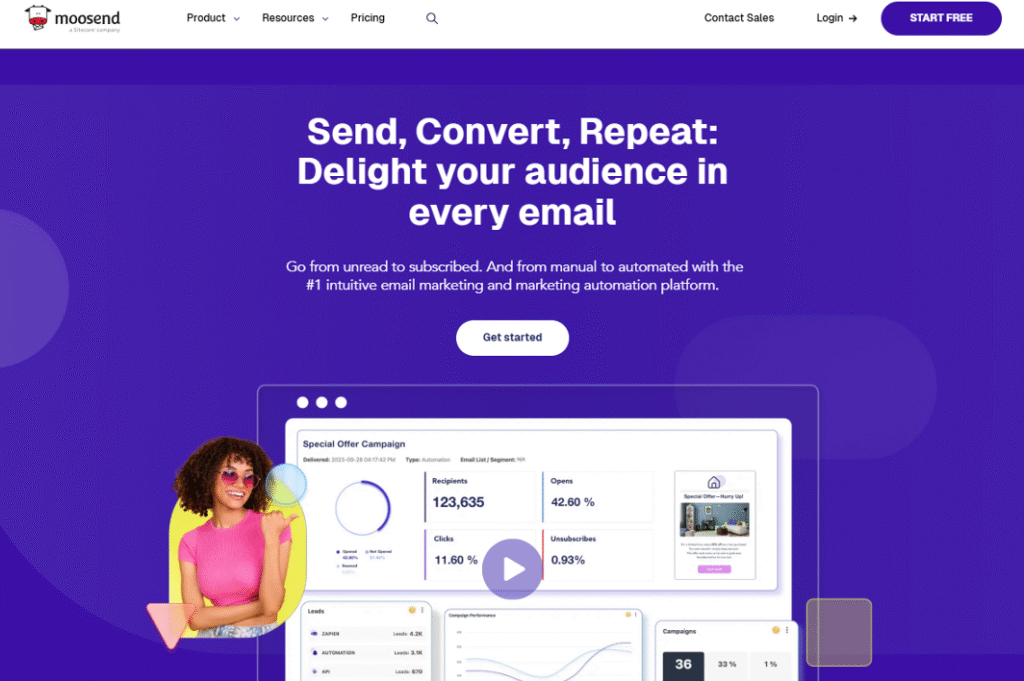 Moosend is an email marketing tool designed with simplicity, yet with core capabilities like built-in email templates, list management, and AI functionality.