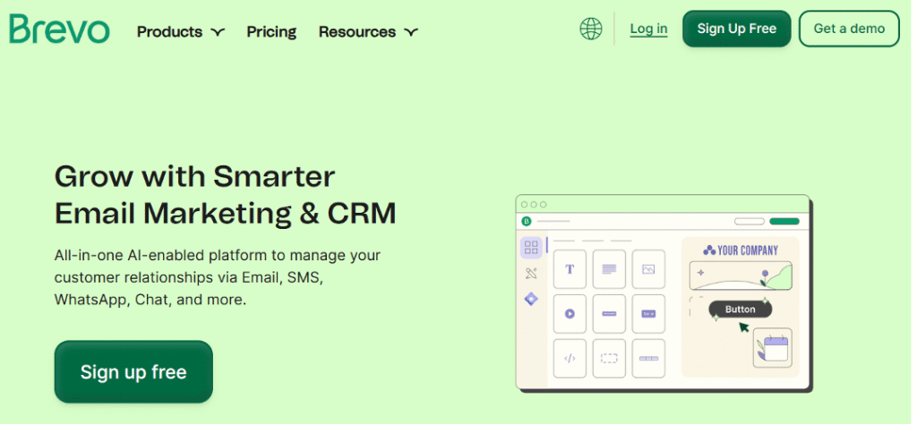 Brevo is a cost-effective marketing solution that helps you communicate with your audience through several touchpoints: email, SMS, WhatsApp, and push notifications. You can also create automation workflows for cross-channel marketing and get more leads with signup forms and landing pages.